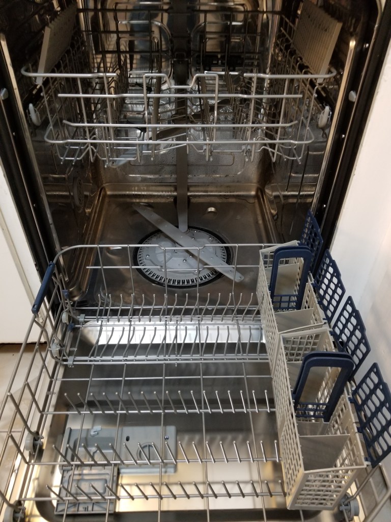 In my defense, it is pretty fabulous. The shelves both have high clearance, the racks fold down in places so I can put in those large dishes that I’ve always had to wash by hand, and it has a second sprayer on the upper shelf to wash those dishes better. Anyone would get excited about that, right?
