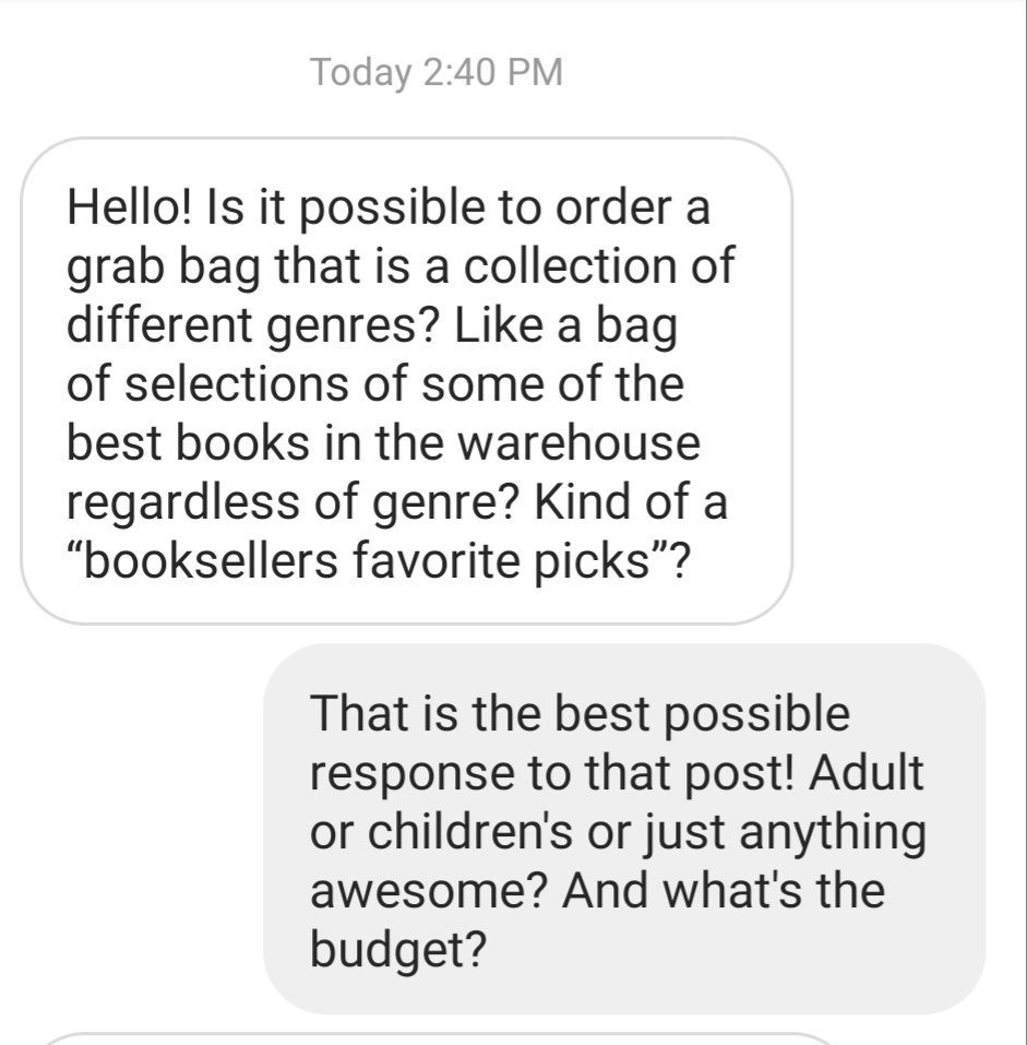 People who are not even regular customers are going out of their way to support our little business. A couple even let a total stranger pick out entertainment for their families and ship it sight unseen for their social distancing periods. The world still values booksellers. I am trusted to do my job well. I am in that gratitude.